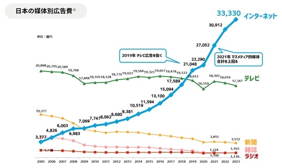若年層を中心に新聞離れ・テレビ離れが進んでいる背景もあって、これまでみたいに莫大な広告費を投じても、思うような成果が得られなくなっているからです。
